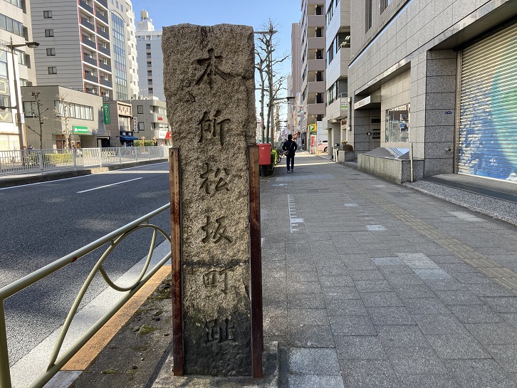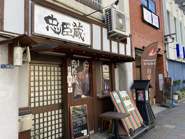 両国といえば、国技館と忠臣蔵ですね。歩道の脇に「本所松坂町趾」と書かれた古びた石柱が建っています。裏面には何やら書かれていますが読み取れません。播州赤穂の四十七士が主君の無念を晴らす為にここにあった吉良邸に討ち入ったのは五代将軍綱吉の時代でした。松坂町という名は吉良家の所領が松坂だったことに由来するそうです。その本所松坂町の地名が無くなることを惜しんで建てられた石碑とのことです。京葉道路から樫川方向に入った路地に面して、吉良邸跡の(ごく)一部に造られた本所松坂町公園があります。公園といっても遊具などはなく、吉良邸内の様子を復元したものです。園内には吉良上野介義央の彫像とか、討ち取った上野介の首を洗った井戸とか、もろもろの展示がされています。毎年12月14日の義士祭の日には、本所松坂町会の人達によって慰霊祭が行われています。京葉道路に面して「忠臣蔵」という店名の居酒屋さんもありますね。劇酒場と謳っていますので、入店するには討ち入りの衣装を着ないといけないかも。