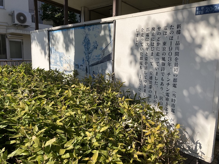 新橋〜品川間を最初の都電(当時市電)が走ったのは1903年。チンチン電車とよばれた都電は、東京の風物詩でもあり、沢山のお客さんを乗せ、のどかに走っていました。1967年、銀座線の廃止にはじまって、交通渋滞の激しい路面から都電は次々と姿を消してゆきました。前の通りを走っていた都電も、1972年に姿を消しました。