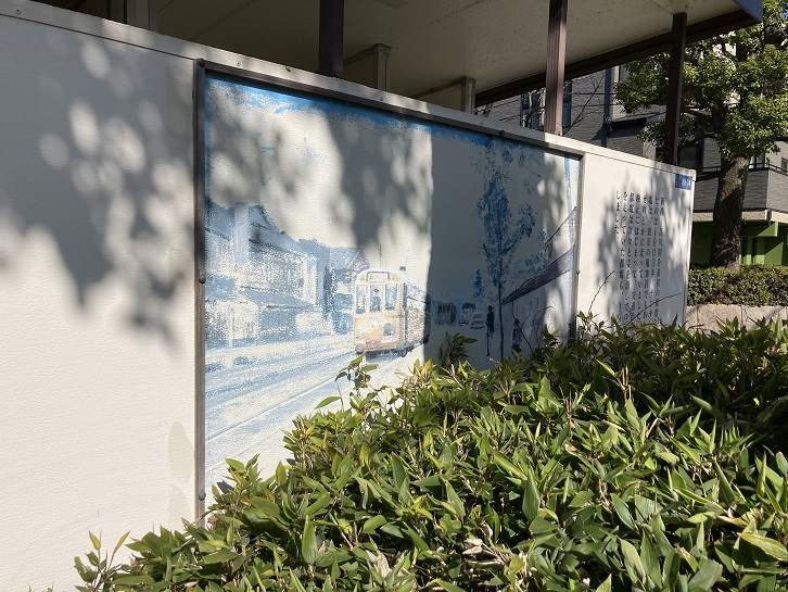公園には、この敷地がかっての都電跡に整備されたということが書かれた案内板が立っています。一部ですが、当時使われていた線路も復元・展示されています。