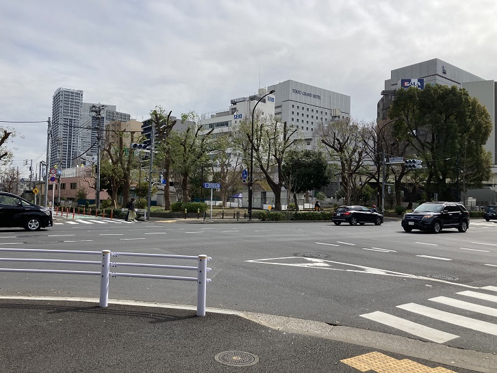 都電34系統の終点である金杉橋電停はどこにあったのでしょうか?私は国道15号線(第一京浜)との交点にある金杉橋北交差点の手前にあったのだと思って歩きましたが、ネットの情報では国道15号線上にあったらしいです。銀座二丁目と五反田駅を結んでいた都電4系統は、国道15号線上にあった金杉橋電停から右折して都電34系統の線路に入っていたとのことです。更に言えば、私が歩いた古川の北側にある道路ではなく、古川の南側の道路を通っていたとのこと。となれば、金杉橋南交差点の辺りに電停があったのでしょうか?