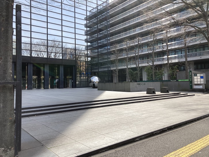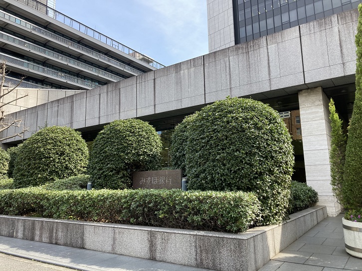 日比谷公会堂の向かいには、みずほ銀行の本店ビルが聳えています。正面入口前は、私が走った年の東京マラソン大会の給水ポイントになっていました。水の入った紙コップをテーブルから取るんですけど、走りながらでは一口飲むのが精一杯で残った水はコップもろとも回収容器に捨ててしまいました。ボランティアさんに申し訳なかったです。建物脇の半地下には宝籤売場がありますが、私はジャンボ宝くじで一回も当ったことはありません。