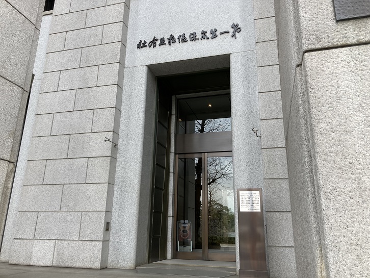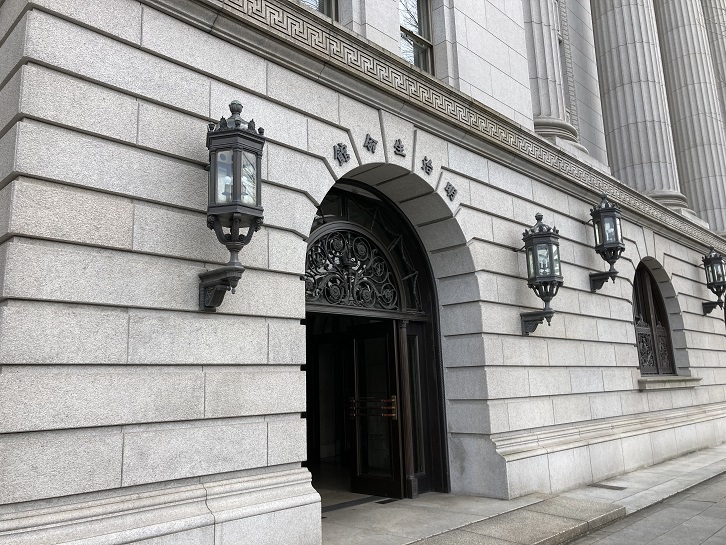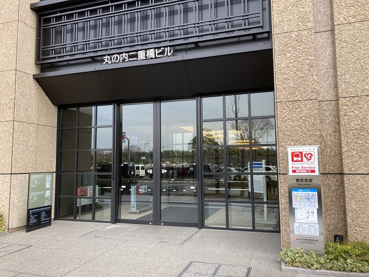 東京海上日動ビルに隣接して、2020年11月に竣工した全銀協(全国銀行協会)の真新しいビルが建っています。全銀協は、日本国内で活動している銀行を直接の会員とする組織で、銀行業の発展のためにさまざまな活動をしている組織です。エントランス横に何やらプレートが置かれています。