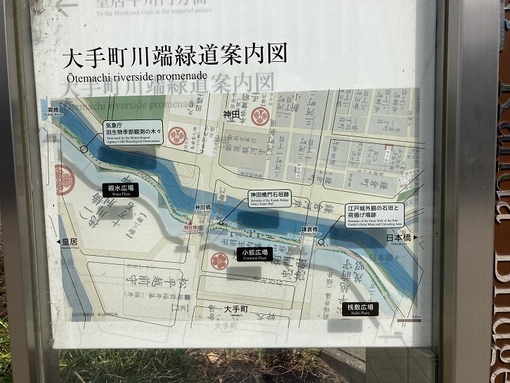 日本橋川に架かる神田橋手前に大手町川端緑道が新設されています。