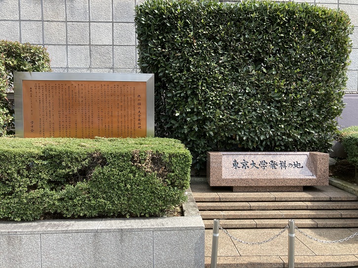 学士会館の敷地内には「東京大学発祥の地」の記念碑があります。