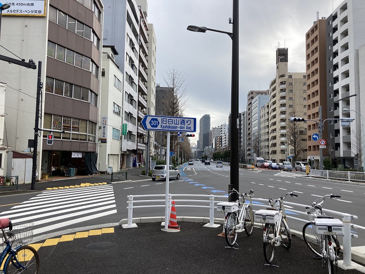 白山上交差点で旧白山通りは国道17号線に合流し、ここから先は国道17号線と併称して千石駅前交差点で白山通りに合流します。なお、千石駅前交差点で国道17号線と合流した白山通りは、この後も国道17号線と重なって西巣鴨交差点まで続いています。