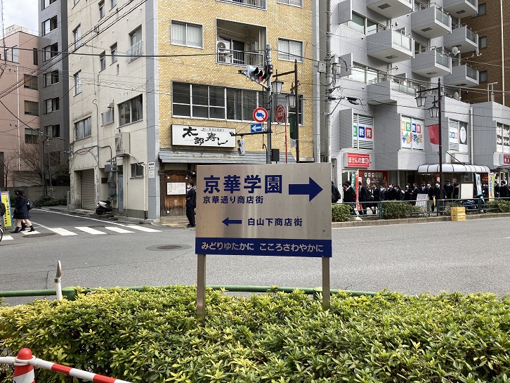 この区間の旧白山通りは坂道になっていて、しかも坂の上で左に急カーブしています。おまけに道幅も狭く、都電の運転手さんは苦労されたことでしょう。旧白山通りから京華通り商店街が分岐しています。その先には白山通りに面して中高一貫教育の京華学園があります。京華学園は、明治三十年(1897年)に京華中學校として創立されました。「京華」とは、「東京の華」という意味で、創立当時の相談役であった品川弥二郎子爵(内務大臣)によって命名されたとのことです。各界で活躍する多彩な人材を輩出しています。映画監督の黒澤明・画家の前田青邨・歌舞伎の二代目尾上松緑・作曲家の武満徹・経団連初代会長の石川一郎などなど。