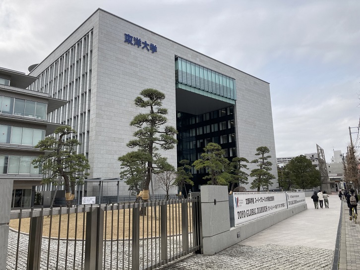 白山上交差点を左折し、坂を下ったところに東洋大学があります。東洋大学は明治二十年(1887年)に井上圓了によって創設された私立哲学館が前身となって、明治四十年(1928年)に設立された大学です。哲学研究においては日本有数の実績を持っています。スポーツ強豪校としても知られ、特に箱根駅伝の「山の神」と呼ばれた柏原竜二選手が圧倒的な強さを見せた5区の激走は今でも語り草になっています。