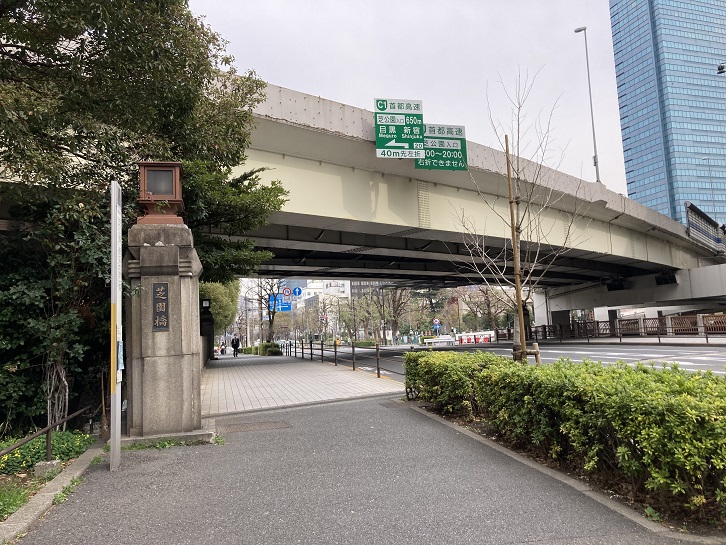 芝園橋の先に芝公園の敷地が拡がっています。芝公園は、都内の公園の多くを手掛けた長岡安平が設計しました。長岡安平は明治時代の造園家で、日本における公園・庭園設計の元祖とも称される人物です。