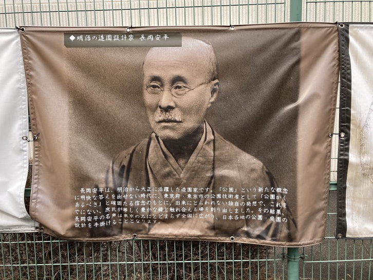 長岡安平は、明治から大正に活躍した造園家です。「公園」という新たな概念に明快な答えを出せない時代に、東京府・東京市の公園技術者として「公園かくあるべき」と確固たる信念のもとに、旧来にとらわれない独自の発想で、これまでにない、庶民が等しく豊かな緑と触れ合える場を創り出しました。その結果、長岡安平の名声は東京のみにとどまらず全国に広がり、日本各地の公園・庭園の設計を手掛けることとなります。