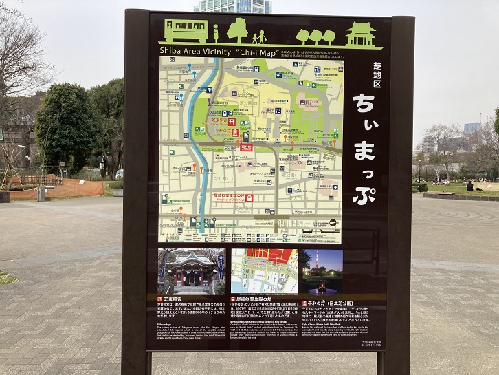 公園の中に港区の「ちぃまっぷ」が立っています。