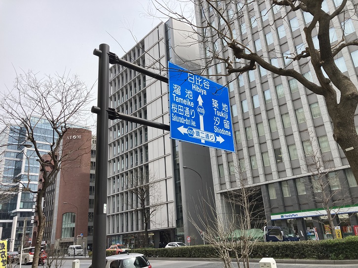 西新橋交差点で外堀通りと交差します。昔、このあたりは田村町と呼ばれていました。日比谷シティは、昭和四十八年(1973年)7月末限りで「NHK放送センター」となって渋谷区神南に移転した旧日本放送会館の跡地に昭和五十六年(1981年)に開業しました。富国生命ビル・日比谷国際ビル・日本プレスセンタービルで構成され、ショッピングモールはこれら3つのビルにまたがる地下街となっています。日比谷シティ広場「サンクンガーデン」は現在に至るまで都内で唯一の屋外イベントスペースがあるオフィス空間として存在しています。かつては冬季になるとニューヨークのロックフェラーセンターのようなスケートリンクが広場に出現し、都内では珍しくビル街にスケートリンクがありました。現在このリンクはやはり冬季に日比谷シティフットサルとして利用されています。