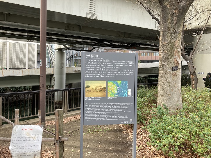 日本橋川に架かる神田橋に面して江戸城三十六見附のひとつだった神田口門(後に神田橋門に改名されました)がありました。橋の脇に案内板があります。明治初期の写真には今にも崩れ落ちそうな木橋が写っています。こんなところを将軍様が通ったのでしょうか?