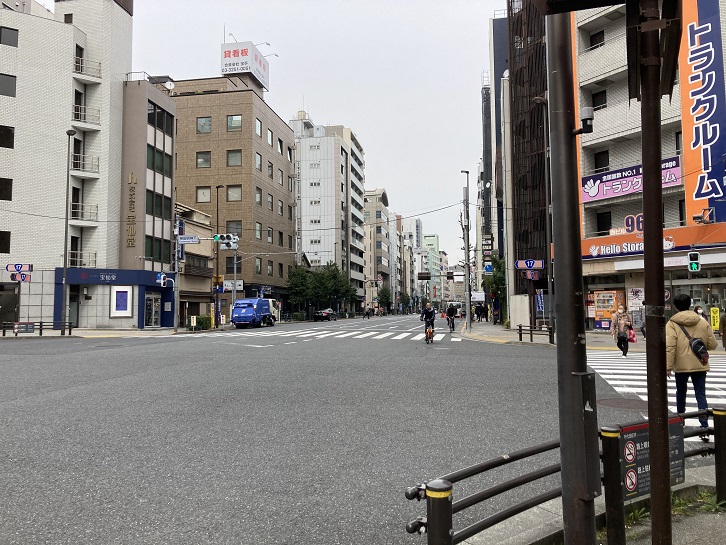 小川町交差点を右折して靖国通りに入ります。その後、淡路町交差点を左折して外堀通りに入ります。