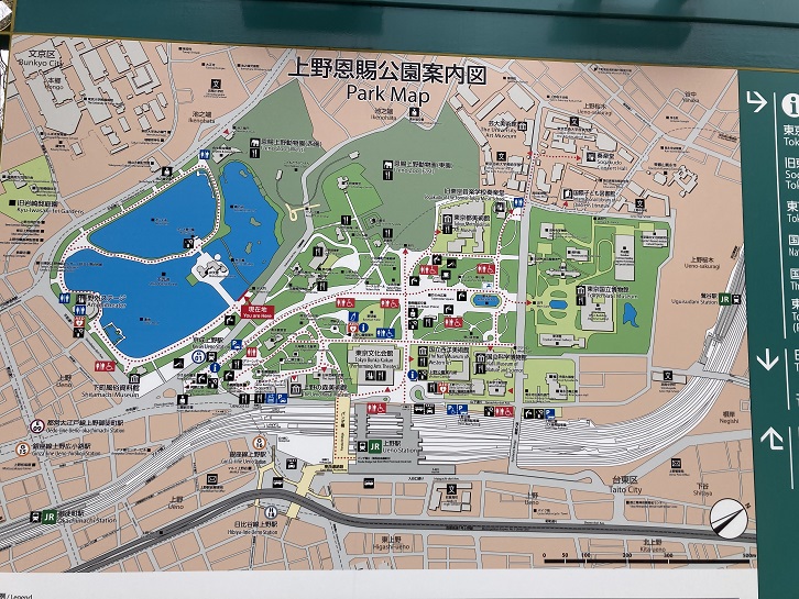 公園の入口に旧町名由来案内板が立っています。「上野恩賜公園」というのが町名だったんですね。実際には住民はいなかったと思いますが。