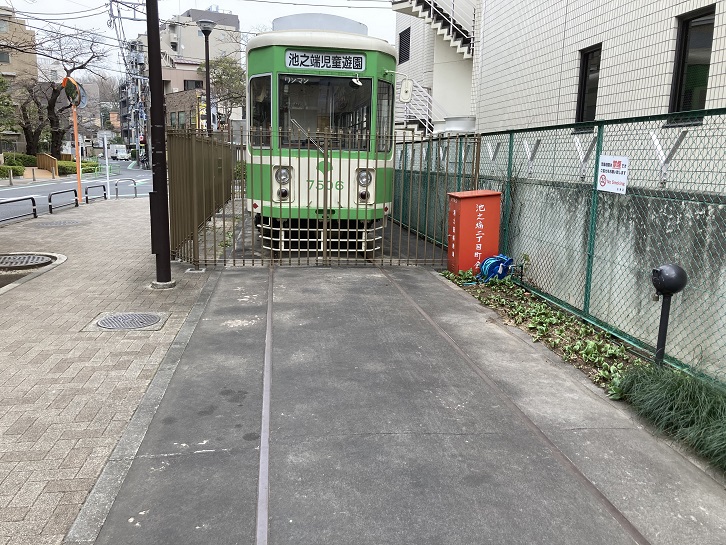 池之端児童遊園に展示されている都電の車両は7500形で、つい最近まで荒川線で走っていたそうです。