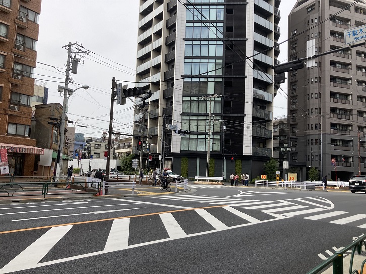 終点の千駄木二丁目交差点にやってきました。千駄木町電停がどこにあったのかは分かりませんが、交差点付近としておきましょう。都電37系統は、これまで踏破した幾つかの系統跡と同じ区間を共有して走っていましたが、新たな発見もありました。淡路町から外堀通りに入り、神田明神下交差点を経由して中央通りに入るまでの区間は都電37系統だけが走っていたようで、右に左に曲がる様はなかなかの見物だったことでしょう。