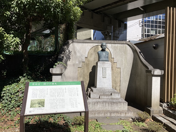 かつて江戸川と呼ばれていた神田川は、たびたび洪水をおこし、沿岸の人々にとって治水事業は、永年の願いでした。明治四十三年(1910年)の大洪水の後、大井玄洞(1855年〜1930年)は人々の願いをかなえるため、治水に尽力しました。大正二年(1913年)に護岸工事着手し、大正八年(1919年)に完成させています。人々は、この治水事業の功績を称え、昭和三年(1928年)神田川沿いの江戸川公園の当所に玄洞の銅像を建てました。