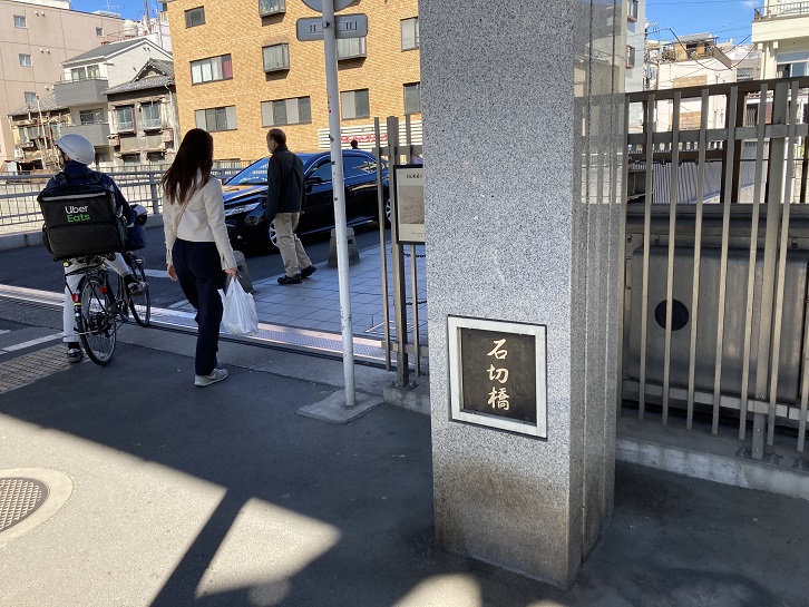江戸川橋から下流の神田川には、比較的短い間隔で橋が並びます。華水橋・掃部橋・古川橋と過ぎると、次が石切橋で橋の南詰に石切橋電停がありました。石切橋は、寛文年間(1661年〜1673年)の架橋といわれる古い橋で、このあたりの橋としては最も幅員の広い橋だったことから江戸期には大橋とも呼ばれたようです。「石切」とはすなわち石工のことで、付近にそうした職人が住んだことによるとされています。石切橋を渡ると、すぐ右手にうなぎ店「はし本」があります。江戸後期から明治期にかけてこのあたりの神田川沿いには多数のうなぎ店が軒を連ねたことで知られ、中でも「はし本」は江戸期からの老舗で、看板には「うなぎ」と書かずうなぎの姿を模した「う」の文字だけを書くのが伝統でした。