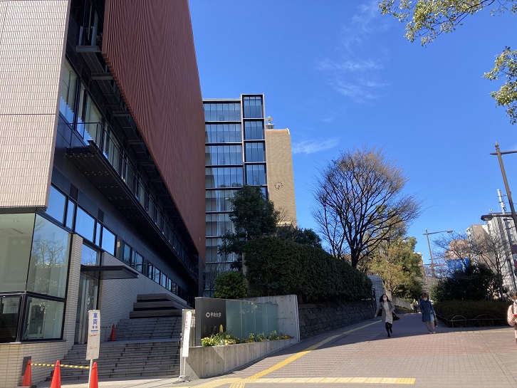 富坂の坂上に中央大学理工学部の校舎が建っています。以前は校舎の屋上にくるくる回る奇妙な装置がありましたが、現在はアンテナらしきものが上空をにらんでいます。大学のHPによれば、気象センサーや全天カメラなどのスカイモニターを納めたミニドームらしいです。くるくる回っていた装置も気象レーダーか何かだったのでしょう。