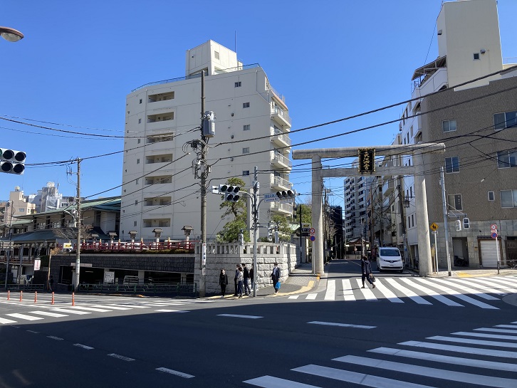 江戸通りと厩(「厠:かわや」ではなく、うまやです)橋交差点で交差します。交差点の先に、年代物のレジスター機器をショーウインドウに並べたお店があります。ウインドウに書かれている「TECレジスター」とは、東芝テック製のレジスターのことのようです。東芝テックは、社名・企業形態に変遷はありましたが、大正時代に国内初の金銭登録機を発売した会社です。なお、「TEC」とは旧社名の東京電気(Tokyo Electric Company)の略称です。POS(販売時点情報システム)システムを中心とするリテールソリューション事業を展開しています。国内外でPOSシステムのトップシェアを誇っています。ここは販売店みたいですが、年代物のレジスターが並んでいたので博物館かと思いました。