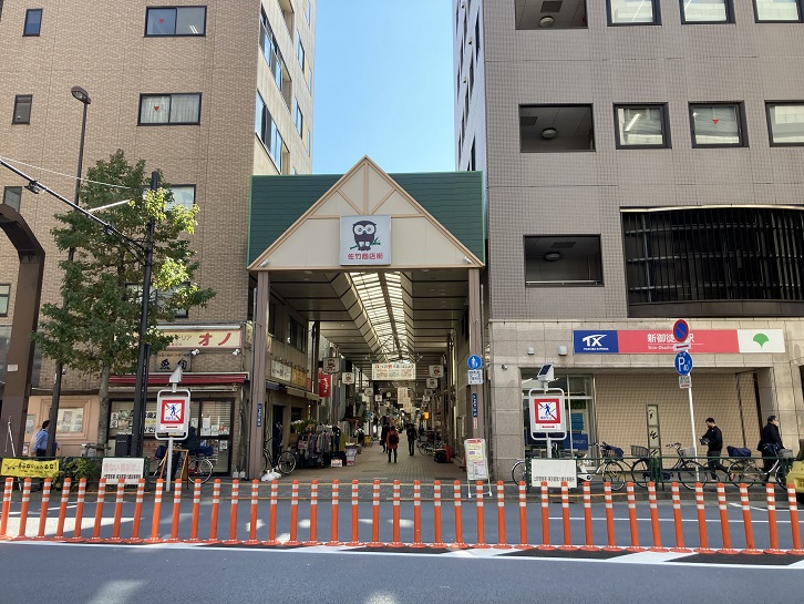 つくばエクスプレスの新御徒町駅に隣接して、春日通りから清洲橋通りに至る全長330mの佐竹商店街があります。アーケード入口のゲートには、ふくろうのマスコットキャラクターが大きな目を見開いて買い物客を呼び込んでいます。ふくろうはアーケード内の支柱にもずらりと並んでいます。佐竹商店街は日本で二番目に古い商店街だそうです。明治から続く由緒ある商店街には衣料品店が目につきますが、昔は古着を扱う店舗が多かったからだということです。衣料品店の他にも、肉屋・青果店・靴店・玩具店・茶舗・煎餅屋・日用品店・文具店・甘味処など、多彩なお店が軒を連ねています。下町らしく、風鈴や手作り傘の店といったお店もあります。商店街の名前の由来は、明治初年に秋田藩の佐竹家屋敷跡に見せ物小屋・寄席・飲食の屋台等が並び、盛り場として賑わい、下町情緒豊かな商店街として発展を続けてきたことに因みます。ちなみに、喉の薬として知られる龍角散は佐竹家の家伝薬だったそうです。