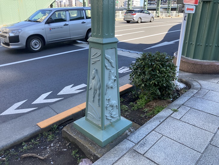ポールの台とか橋の欄干には、馬の飾りが付けられています。厠(かわや)と誤読する人が絶えないからなのでしょう。