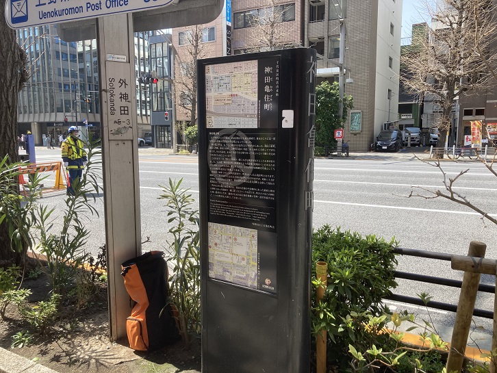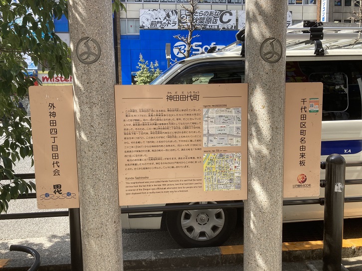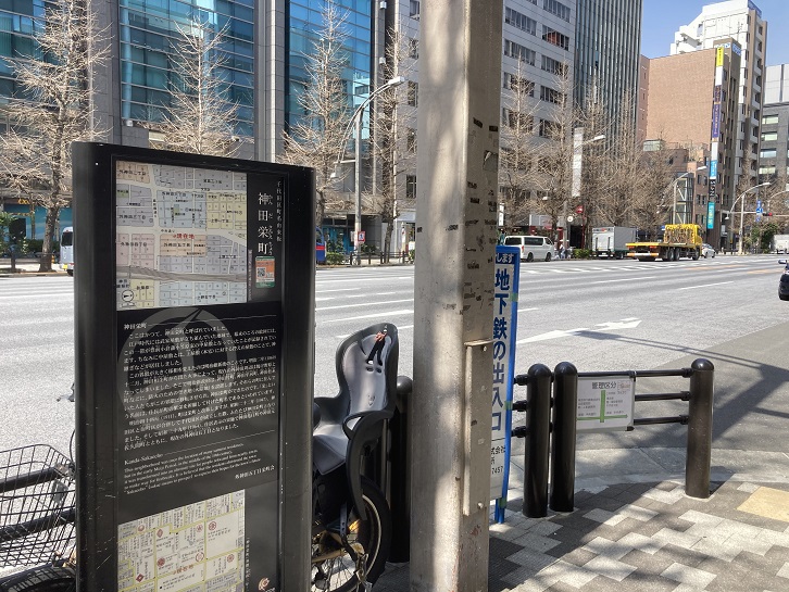 神田栄町の町名由来版が立っています。