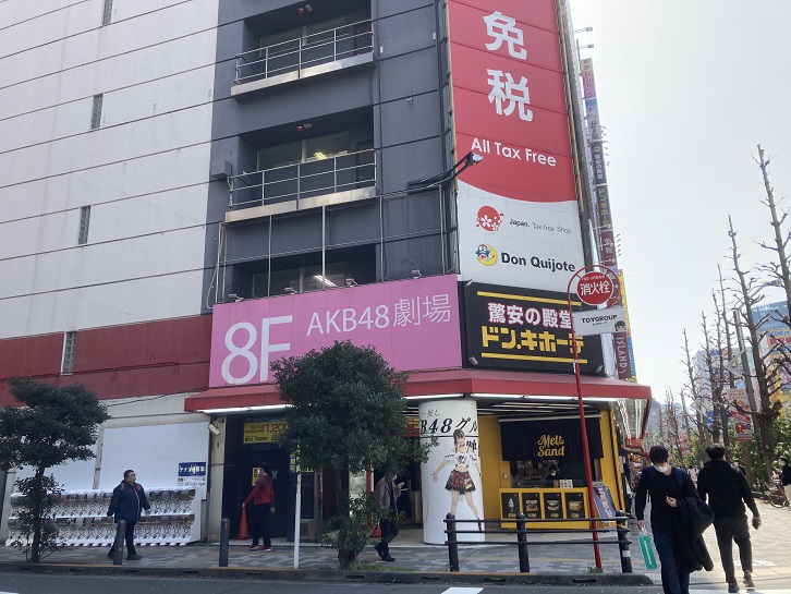 万世橋を渡ると、中央通りに沿って秋葉原電気街が続いています。秋葉原は第二次世界大戦後、闇市として発展しました。高度経済成長とともに、多様な電子機器や部品を取り扱う店舗などが建ち並ぶ日本一の電気街として発展しました。その後、バブルの崩壊や大型家電量販店・ディスカウントストアの台頭などによる家電市場の衰退で電器店は主力商品をパソコンに移していきました。これによって、パソコンマニアが集中し、秋葉原は一転してオタクの街として変貌を遂げました。世界的な観光地としても注目されるようになりましたが、2010年代以降はネット販売の普及と地価上昇、それに昨今のコロナ禍などでオタク向けの小売店が軒並み閉店し、代わって大資本によるコンセプトカフェが進出し、区画整理の推進などもあって今ではオフィス街に変貌しつつあります。アキバの中程の中央通りに面するドンキ秋葉原店8階にAKB48劇場があります。AKB48専用のライブハウスで、2005年12月8日にデビュー公演が行われました。ドンキと劇場とは意外な組み合わせですが、これには建物の8階が構造上ドンキにとって営業しずらかった点と、逆に天井高や広さがライブハウスの設備に適合していたことから選ばれたそうです。私は入ったことはありませんが。