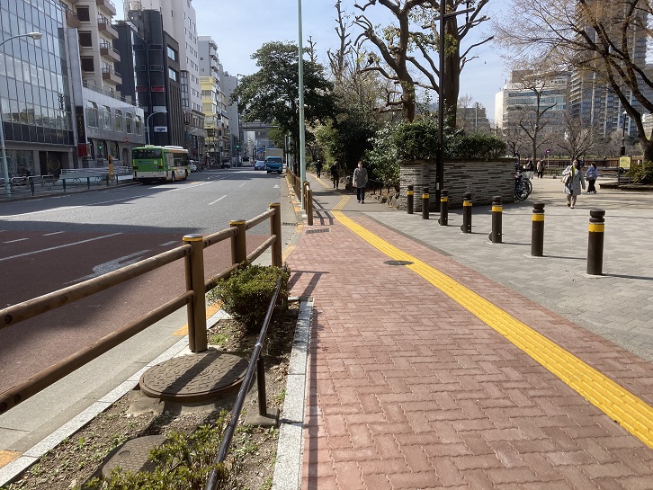 上野四丁目交差点を左折して不忍通りに入ります。そのまま素直に不忍通りを進めば、終点の神明町に至るのですが、都電40系統は交差点の先から不忍池のある上野公園に入っていったようです。現在は車止めがあって車は入れませんが、恐らくはここに都電の線路が敷かれていたのでしょう。