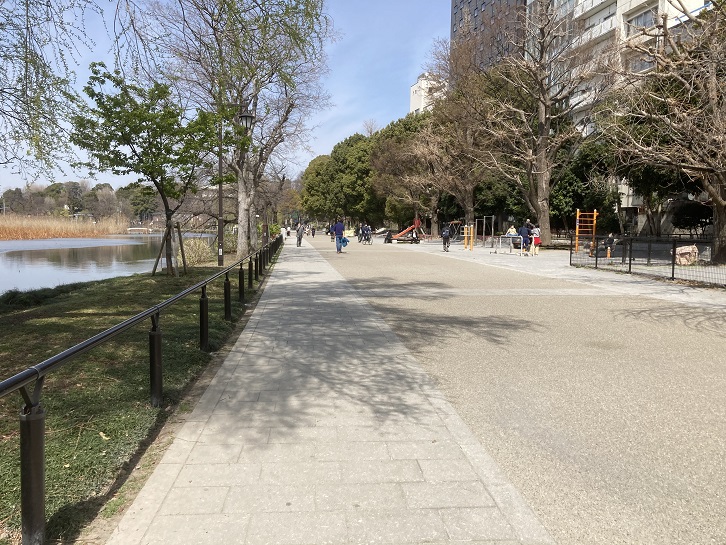 都電40系統の線路がどの辺りに敷設されていたのか分かりませんが、不忍池キワキワのところか、動物園通りとの境界線に沿っていたのではないかと思われます。当時の車内からは今林立している高層マンション群など想像もできなかったことでしょう。