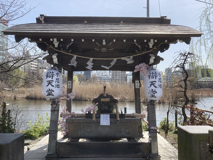 寛永二年(1625年)天海僧正は、比叡山延暦寺にならい、上野台地に東叡山寛永寺を創建した。不忍池は、琵琶湖に見立てられ、竹生島に因んで、常陸(現茨城県)下館城主水谷勝隆が池中に中之島(弁天島)を築き、さらに竹生島の宝厳寺の大弁才天を勧請し、弁天堂を建立した。当初、弁天島へは小船で渡っていたが、寛文年間(1661年〜1672年)に石橋が架けられて、自由に往来できるようになり、弁天島は弁天堂に参詣する人々や行楽の人々で賑わった。弁天堂は、昭和二十年の空襲で焼失し、昭和三十三年九月に再建された。弁天堂本尊は、慈覚大師の作と伝えられる八臂の大弁才天、脇士は毘沙門天、大黒天である。本堂天井には、児玉希望画伯による「金竜」の図が画かれている。また、本堂前、手水鉢の天井に、天保三年(1832年)と銘のある谷文晁による「水墨の竜」を見ることができる。大祭は、九月の巳の日で、已成金という。
