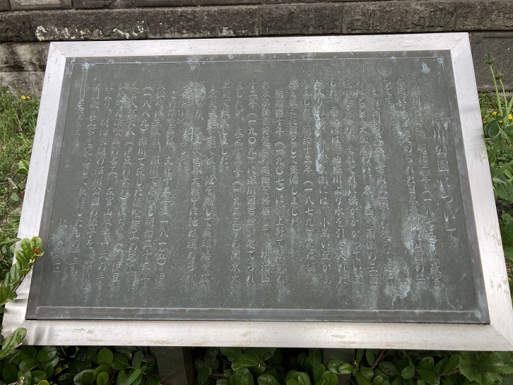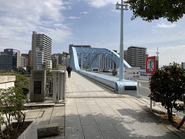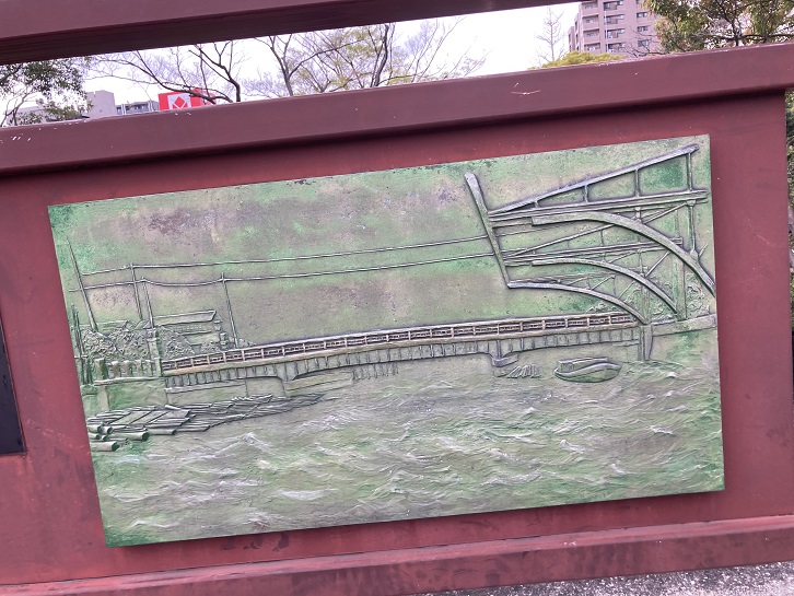 This bridge was constructed in 1878, and moved from Chuo City to east of Tomioka Hachimangu Shrine following the great Kanto earthquake in 1923. It is the oldest iron bridge within the Tokyo metropolis and listed as an Important Cultural Property of Japan. Although it is considered small (measuring 15.7m in length and 2m in width), its early Meiji era architecture style adorned with highly technical