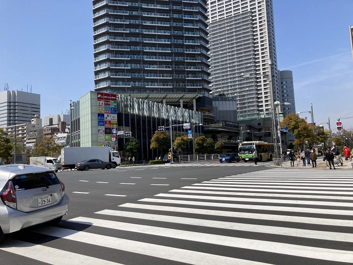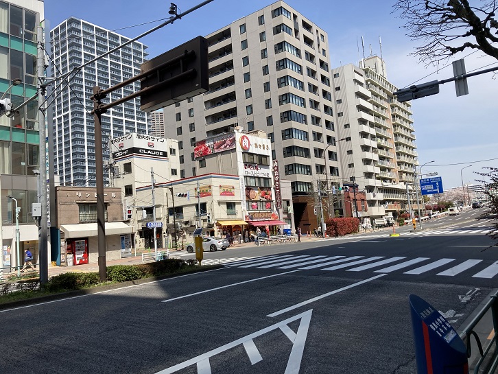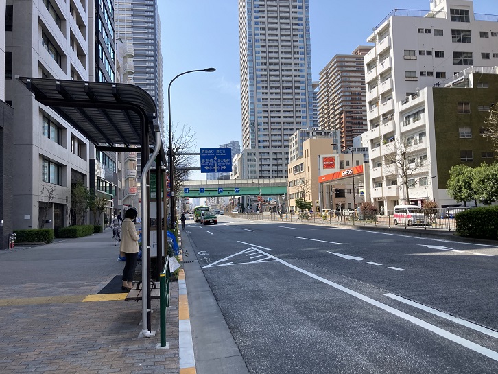 勝どき駅前交差点を右折して晴海通りに入ります。「月島通八丁目」と呼ばれていた電停は、現在の都営地下鉄大江戸線の勝どき駅前交差点付近にあったそうです。