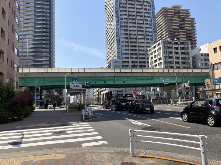 新月陸橋は、清澄通りと佃大橋通りを立体交差するための陸橋です。2016年まで東京マラソンのコースでしたね。入船橋から佃大橋への上り勾配を死ぬ思いで走り、新月陸橋に差し掛かる頃はヘロヘロになっていました。