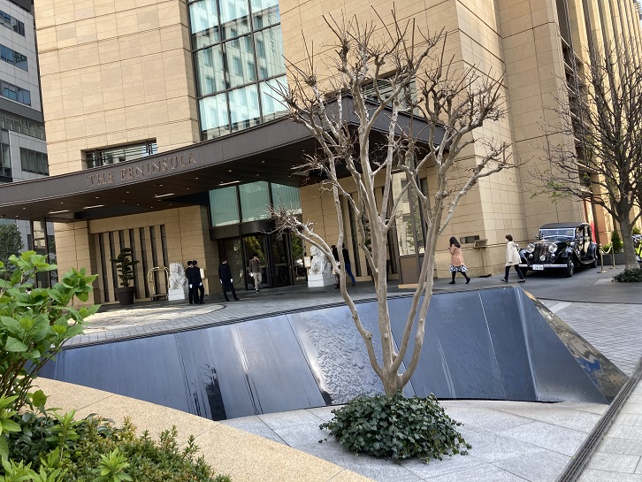雑多なお店の立ち並ぶガード下から数分も歩けば、そこには別世界のような高級ホテルのザ・ペニンシェラ東京があります。入口の脇には紛うことのないロールス・ロイスが駐車しています。ザ・ペニンシェラ東京の屋上にはヘリポートが設置されていて、宿泊客がホテルと成田空港などを行き来することができるようになっていますが、未だ営業免許が取得できていないためにヘリコプターを使った送迎はできないとのことです。その代わり、空港送迎などに利用できるハイヤーが各車種用意されています。ロールス・ロイス・ファントム・エクステンデ ット・ホイールベースは、英国南部グッドウッドにあるロールス・ロイスの本社工場において、熟練した職人の手により一台一台が手作業で製造され、ロールス・ロイス伝統の特別オプションシステム「ビスポーク・プログラム」を通して、ペニンシュラ独自の要件に応えた特別仕様となっています。人生に一度くらいはロールス・ロイスの後部座席にふんぞり返ってみたいものです。