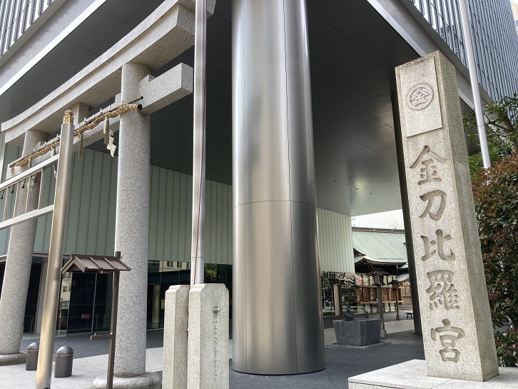 霞が関の官庁街を抜け、虎ノ門交差点を渡った先に虎ノ門金刀比羅宮(ことひらぐう)があります。金刀比羅宮は万治三年(1660年)、讃岐丸亀藩の藩主京極高和が芝・三田の江戸藩邸に金毘羅大権現を勧請し、その後延宝七年(1679年)に丸亀藩江戸藩邸の移転とともに現在の虎ノ門に遷座しました。香川県にある総本宮の金刀比羅宮は「さぬきのこんぴらさん」という愛称で呼ばれ、長く続く参道の石段は本宮まで785段、奥社までだと1368段あるそうです。丹沢の大山阿夫利神社の男坂といい勝負ですね。