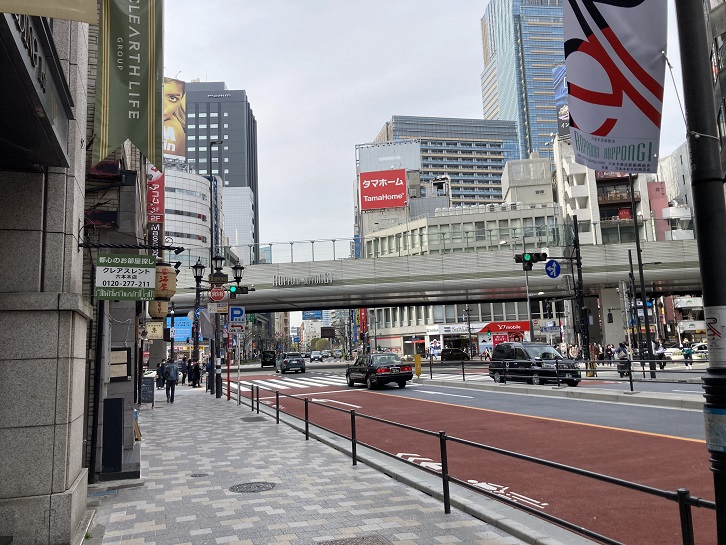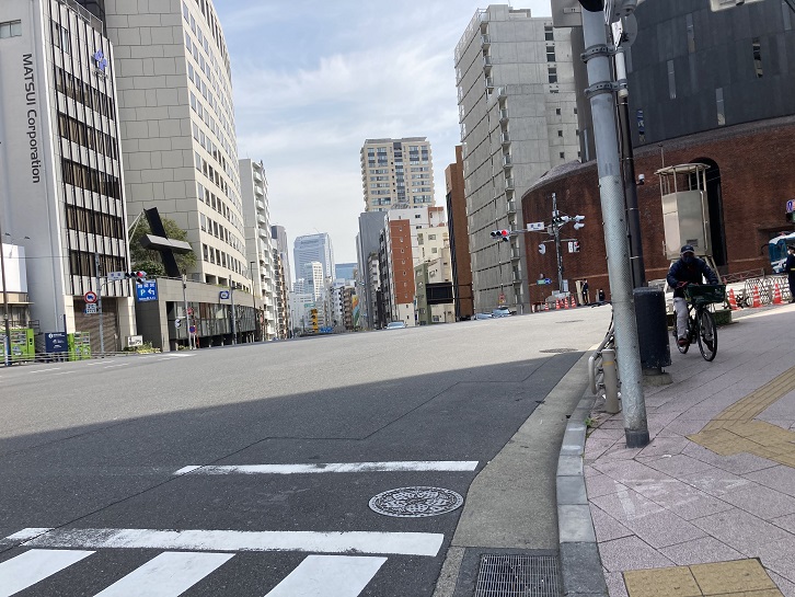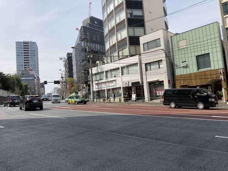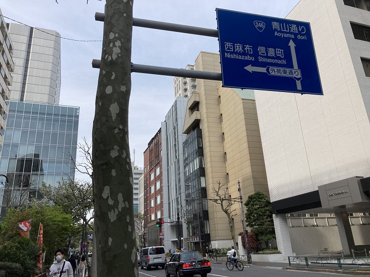 外苑東通りは青山通りと交差する直前でクランク状に曲っています。