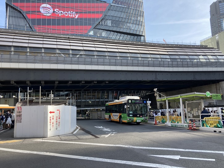 ネットの情報によれば、都電9系統の渋谷電停は何度かの移動を繰り返した後で、現在の渋谷ヒカリエ前辺りに落ち着いたみたいです。私はそこから往復共に宮益坂を経由していたんだろうと思っていましたが、実は都電9系統は渋谷駅前でループ状の線路になっていたのだということが後で分りました。渋谷に向う電車は青山通りから玉川通りに抜ける金王坂を下り、右折して渋谷電停に向かいました。そして、浜町中ノ橋行きの電車は渋谷電停を出発してから地下鉄銀座線の高架の下を通り(地下鉄なのに線路が道路の上にある!)、宮益坂下交差点で右折して宮益坂を登って行ったのです。そんな訳で、渋谷電停跡だと思っていた東口の都営バス乗り場に到着しました。