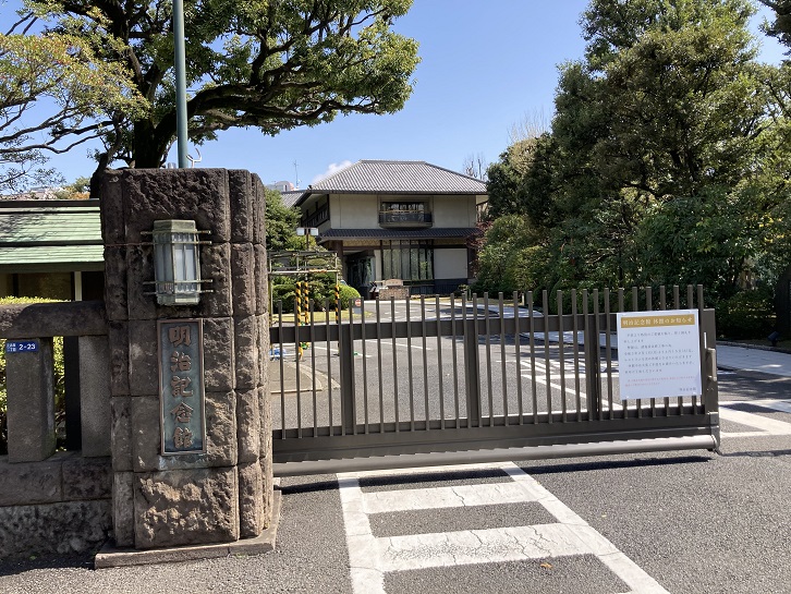 明治記念館は、港区元赤坂二丁目にある総合集宴会施設で、明治神宮に附属する結婚式場として知られています。明治記念館は、明治期初頭に建てられた赤坂仮御所の別殿で、ここで大日本帝国憲法と皇室典範の草案審議の御前会議が行われました。その後、この建物は憲法制定の功績で明治天皇から伊藤博文に下賜されることになり、大井の伊藤邸内に移築されました。伊藤の死後、明治神宮外苑に再移築され、この時に「憲法記念館」となりました。戦後の昭和二十二年(1947年)に、リコー三愛グループの創始者である市村清の主導により、憲法記念館を「明治記念館」と改名し、現在では結婚式の会場のほか、宴会場・会議施設としても利用でき、レストラン等も併設しています。