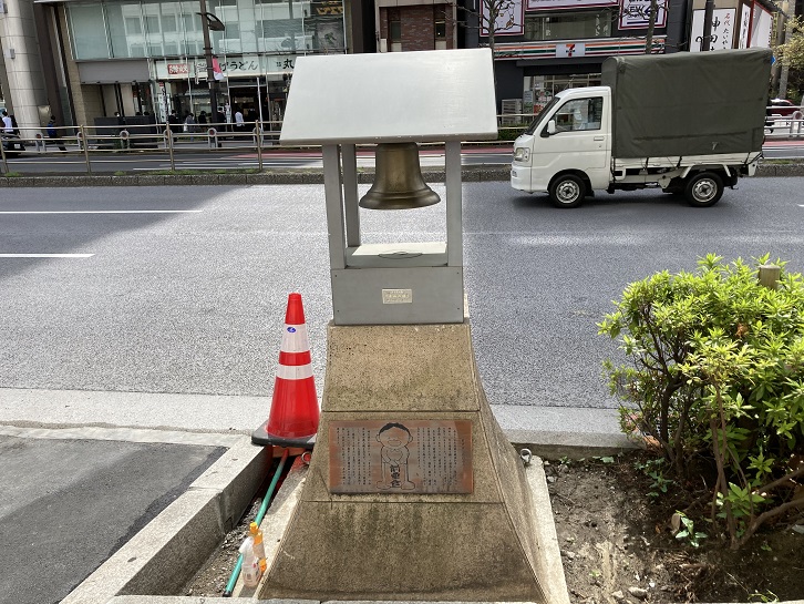 道路沿いの植栽の中には、商店街が寄贈した「平和の鐘」のモニュメントも置かれています。神田民は地元愛が強いですね。