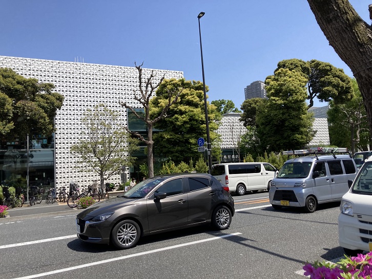 間坂はセルリアンタワーの裏を通っています。セルリアンタワーは1992年までこの地にあった東急本社の跡地に建てられ、2001年4月に開業しました。レストラン・オフィス・ホテルなどで構成される超高層複合ビルで、名称の「セルリアン」は英語で”青空色の”という意味です。「青空のように、爽やかで快い空間でありたい」・「世界の人々が空を共有するように、グローバルに日本と世界を繋ぐ国際交流の拠点でありたい」という願いが込められ、「美しい生活環境を創造する」という東急グループの企業理念を反映させたものになっています。この日の青空はまさに”セルリアン”ですね。