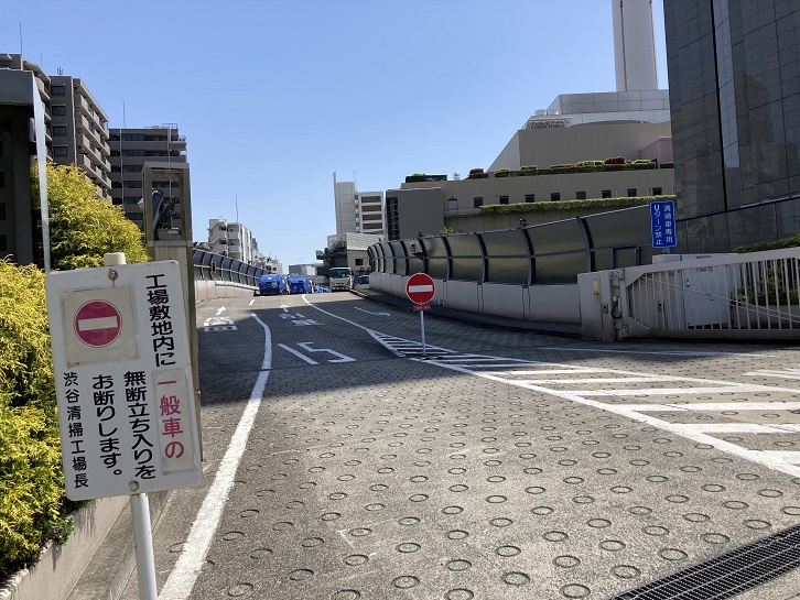 八幡通りには、JRの線路を跨ぐ格好で大きな陸橋(猿楽橋)が架かっています。猿楽橋の先に渋谷清掃工場への出入口があります。よくこんな場所に清掃工場を建てたよなと思えるくらいの立地です。それなのに杉並ゴミ戦争のような話は聞きませんね。