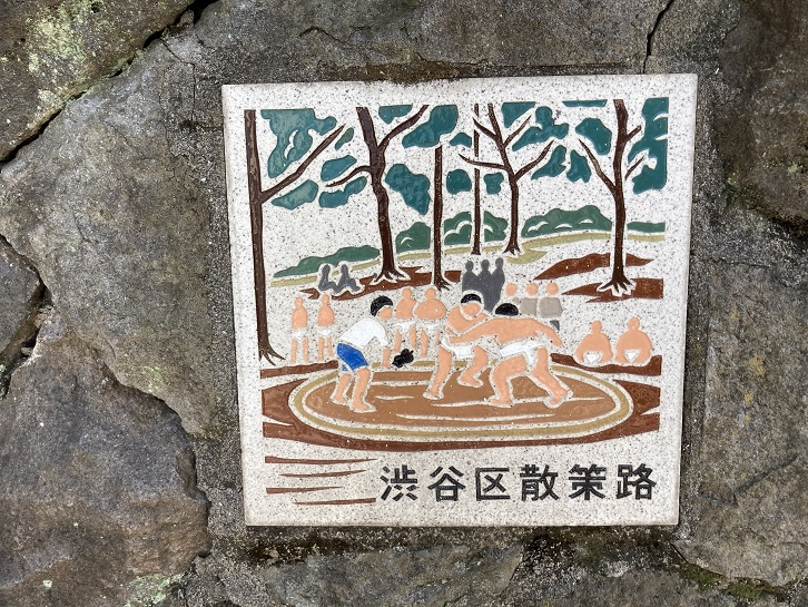 境内には江戸時代に造られた由緒ある相撲場が残っています。氷川神社では、古来より祭礼として相撲が奉納されていて、大井鹿嶋神社・世田谷八幡宮と共に江戸郊外の三大相撲として知られていました。例祭(9月29日)には昔から参道傍の相撲場で大相撲が行われ、「渋谷の相撲」・「金王の相撲」などといわれて、近郷近在は勿論、江戸表からも見物人が多く集まりました。ある年凶年のため休んだところ、集まった面々によって遂に大相撲になった事もあるというくらいで、将軍家でさえ「渋谷の相撲なら見に行こう」といわれたと伝えられています。近所の歩道には子供相撲を描いたタイル絵も敷かれています。