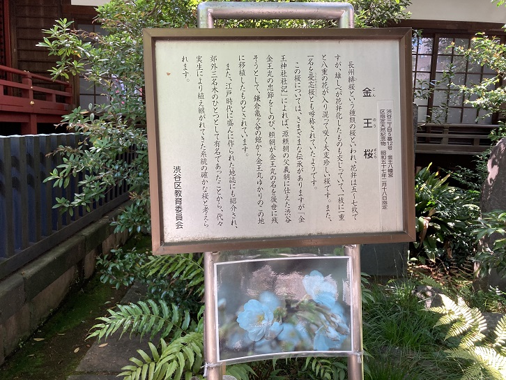 境内に1本の桜の木があります。金王桜と呼ばれ、渋谷を代表する桜の木となっています。