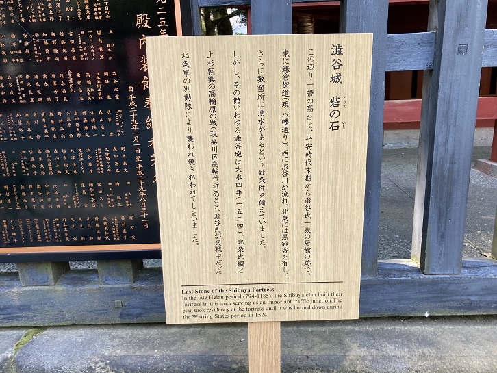 境内には澁谷城の砦の石も残されています。この石は900年近く渋谷の移り変わりを見てきたのでしょう。