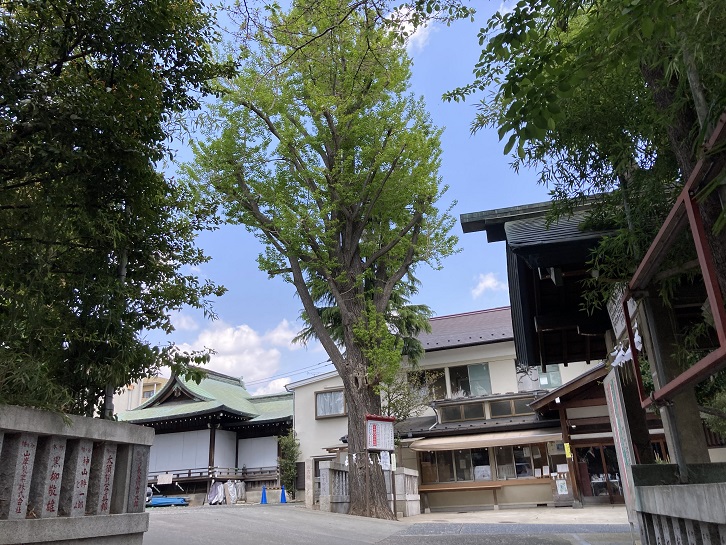 氷川神社は都内でもあちこちにありますね。総本社は大宮氷川神社で、東京都・埼玉県近辺には約280社もの氷川神社があるそうです。幡ヶ谷の氷川神社はかっては旧幡ヶ谷村の総鎮守でしたが、現在では幡ヶ谷地域の氏神様として尊崇されている神社です。境内にはご神木のイチョウの大樹が天を衝いています。ちなみに、別当寺(専ら神仏習合が行われていた江戸時代以前に神社を管理するために置かれた寺のこと)は、この後に立ち寄る幡ヶ谷不動尊(荘厳寺)でした。