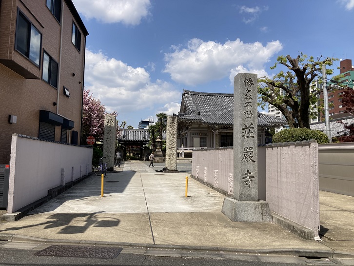 旗洗池跡を後にして、荘厳寺に向います。幡ヶ谷不動尊の名前で知られたお寺ですが、さきほど立ち寄った氷川神社の別当寺にもなっていました。
