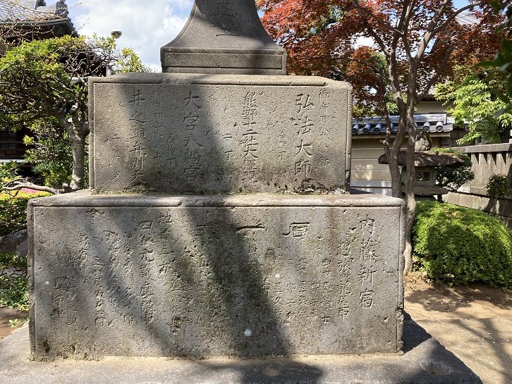常夜灯はお寺の門の外にも2基立っていますが、「道しるべ」にある常夜灯は門を入った植木の中に1基だけ立っています。芭蕉の句碑は探したのですが、墓地に入るのが躊躇され、残念ながらパスしました。