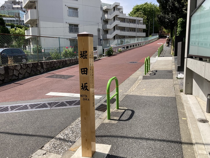 西麻布方面からの上り坂は、堀田家の下屋敷があった名残りで堀田坂と呼ばれています。