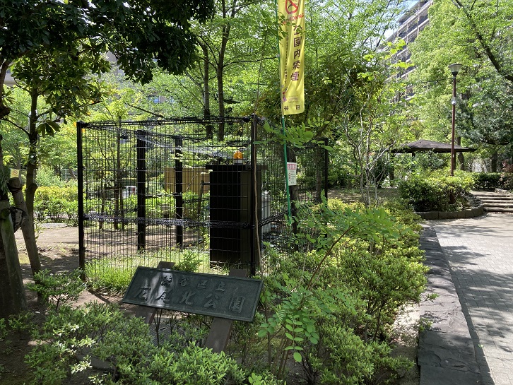 いもり川の流路跡から外れて山種美術館に向います。いもり川は羽根沢と呼ばれる谷間を流れていましたが、かってこの谷間にレストラン・宴会場・結婚式場などを備えた飲食・宴会施設の羽澤(はねざわ)ガーデンがありました。紆余曲折を経て2011年から解体され、現在はその跡地に低層の超高級マンションが建っています。